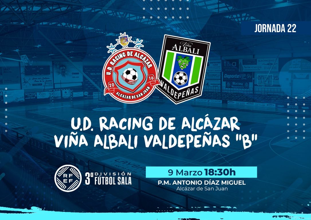 Nueva jornada en casa para el equipo Senior de fútbol-sala del Racing de Alcázar, en su lucha por salir de los puestos de descenso. Este sábado, los rojiblancos, reciben desde las 18:30h al filial del Viña Albali Valdepeñas, con arbitraje de Samuel Sánchez Martín-Forero y Lucas Benítez Herrera, asistidos por Álvaro Moreno Cebrián, en un choque donde sumar los tres puntos es de vital importancia.
