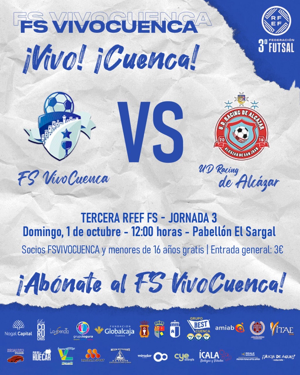 Desde el FS VivoCuenca, animan a su equipo a través de redes sociales: Cambiamos el chip y nos ponemos en modo "liga" para disfrutar del partidazo de este domingo ¡Os necesitamos en El Sargal para aupar a nuestros azulones a otro triunfo! ¡VIVO! ¡CUENCA!