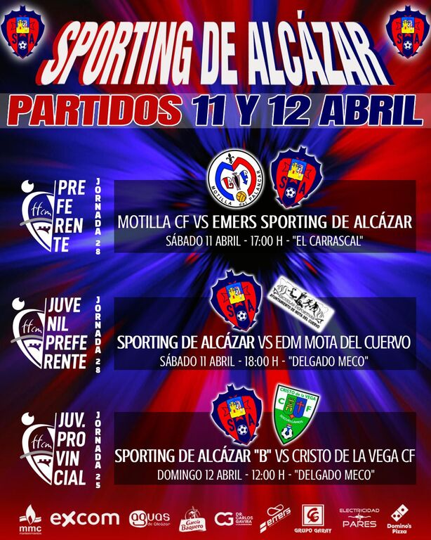 El Emers Sporting de Alcázar tiene este sábado, en partido adelantado de la 28ª jornada de liga, en el grupo 1 de la primera autonómica preferente, una auténtica final en la lucha por los playoffs de ascenso, en Motilla del Palancar. El equipo alcazareño, quinto clasificado con 46 puntos, se desplazará hasta la localidad conquense, donde a partir de las 17:00 horas, en el municipal El Carrascal y con arbitraje de Alejandro Ruiz Corredor, que estará asistido en bandas por Antonio López Cid y Adrián Alcázar García, se medrá al Motilla CF, undécimo clasificado con 34 puntos.