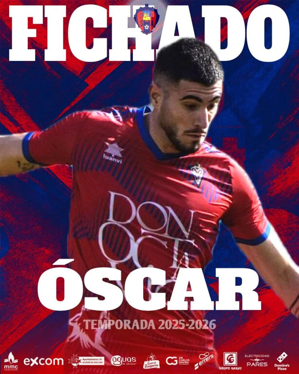 El Sporting de Alcázar ha hecho público el fichaje de Óscar García para la temporada 2025-2026. El delantero albaceteño reforzará así el ataque de la primera plantilla destacando por su gran envergadura (1,93 m.), su potente juego aéreo y su pierna izquierda. Llega procedente de La Roda CF, club en el que ha militado la última campaña tras salir del CP Villarrobledo.