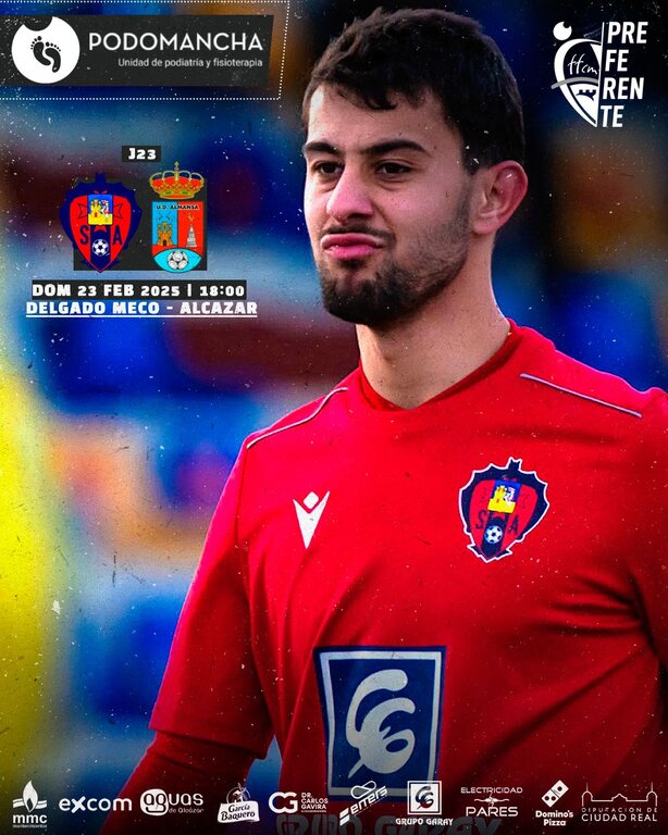 El Sporting de Alcázar recibe este domingo, a partir de las 18:00 horas en el municipal Manuel Delgado Meco en el “partidazo de la jornada 23ª de la Primera Autonómica Preferente, a la UD Almansa, con arbitraje de Álvaro Recuenco Jiménez que estará asistido en bandas por Guillermo Ballesteros Rubio y David Izquierdo Mayoral.