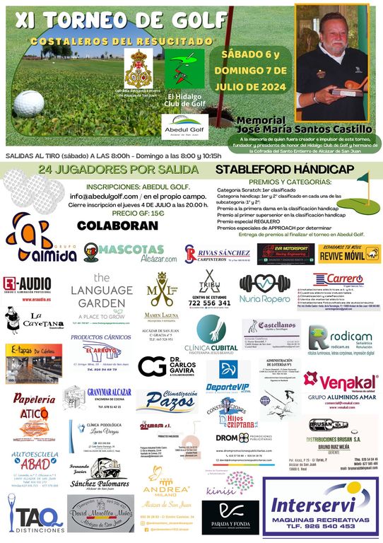 Abedul Golf acogerá este fin de semana, la undécima edición del Torneo Benéfico de Golf “Costaleros del Resucitado”, memorial José María Santos Castillo, creador e impulsor de este Torneo, organizado por la Cofradía del Santo Entierro y El Hidalgo Club de Golf de Alcázar de San Juan con la colaboración de Abedul Golf.