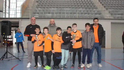 El concejal de Deportes, Javier Ortega, acompañó al nuevo delegado de la Sección de Fútbol Escolar del IMD, Juan José Ángulo Galán en la entrega de trofeos de la vigésimo tercera edición, donde recibieron trofeos los cuatro equipos primeros clasificados de las siete categorías que han participado, en un pabellón Vicente Paniagua que como es habitual, congregó a numeroso público, padres, madres, familiares y aficionados a este deporte. Además todos los participantes, recibieron su medalla conmemorativa.