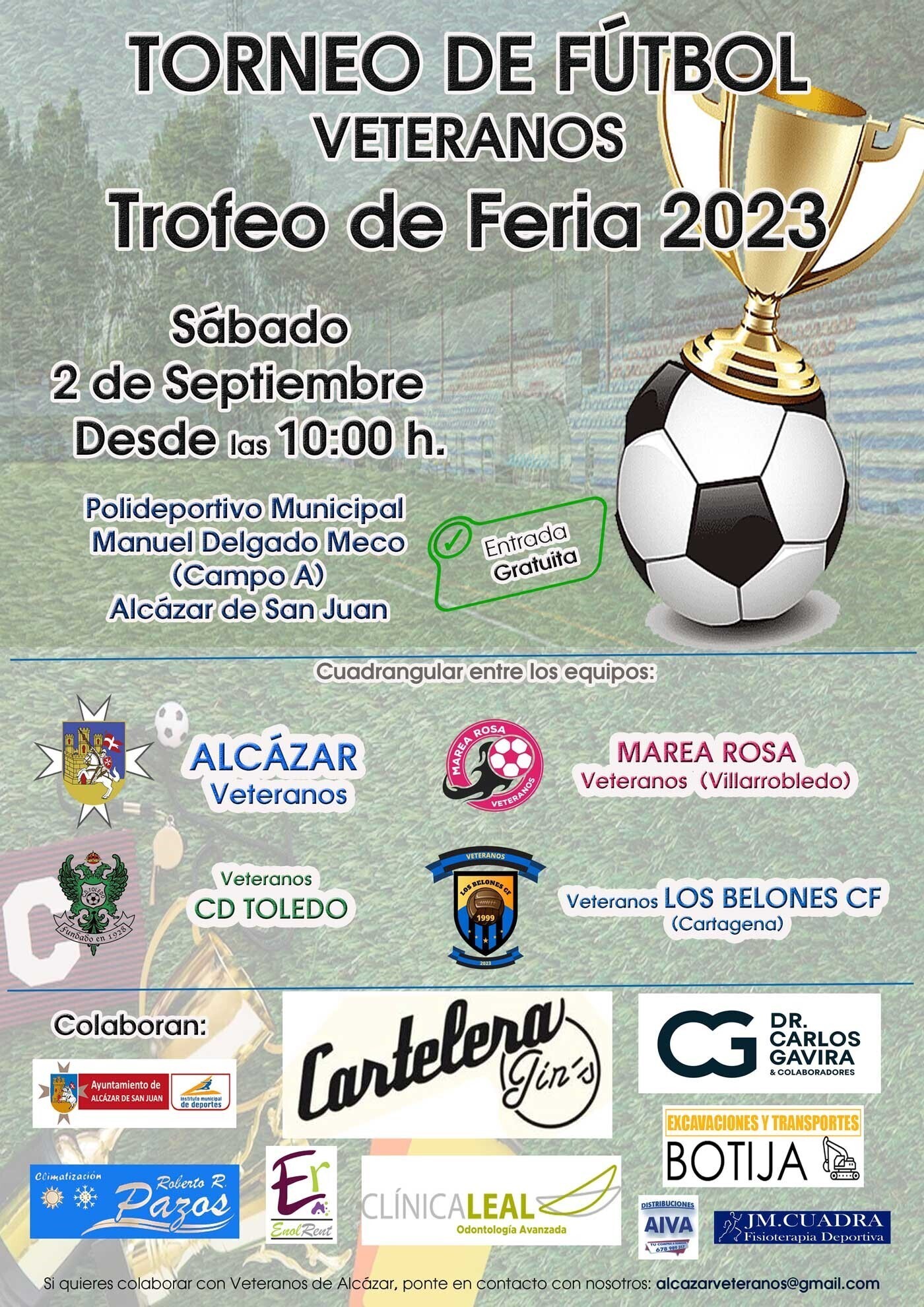 El equipo de veteranos de fútbol de Alcázar ya tiene organizado su tradicional Trofeo de Feria y Fiestas 2023. Un Trofeo que en esta edición se disputará en formato cuadrangular y tendrá lugar el próximo sábado 2 de Septiembre desde las 10 horas en el estadio municipal “Manuel Delgado Meco”.