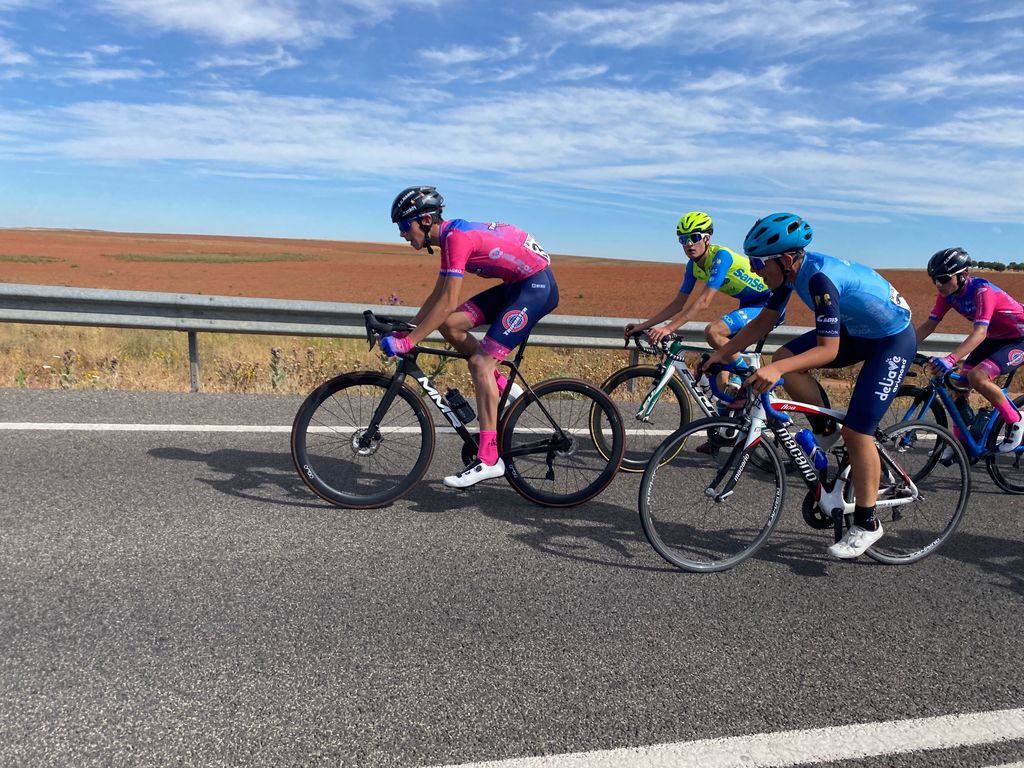 El juez árbitro daba referencias mediante un top [J1] cada cierto tiempo y así tuvimos constancia de que un grupo de doce corredores se hizo fuerte y fracturó al gran pelotón inicial. El ritmo de carrera era fuerte pese al aumento del calor ambiental. Los jóvenes y espigados ciclistas no cejaban en su empeño y dieron un nuevo impulso al que solo pudieron sumarse cinco corredores que mantuvieron una diferencia cercana al minuto desde ese momento hasta el final.
