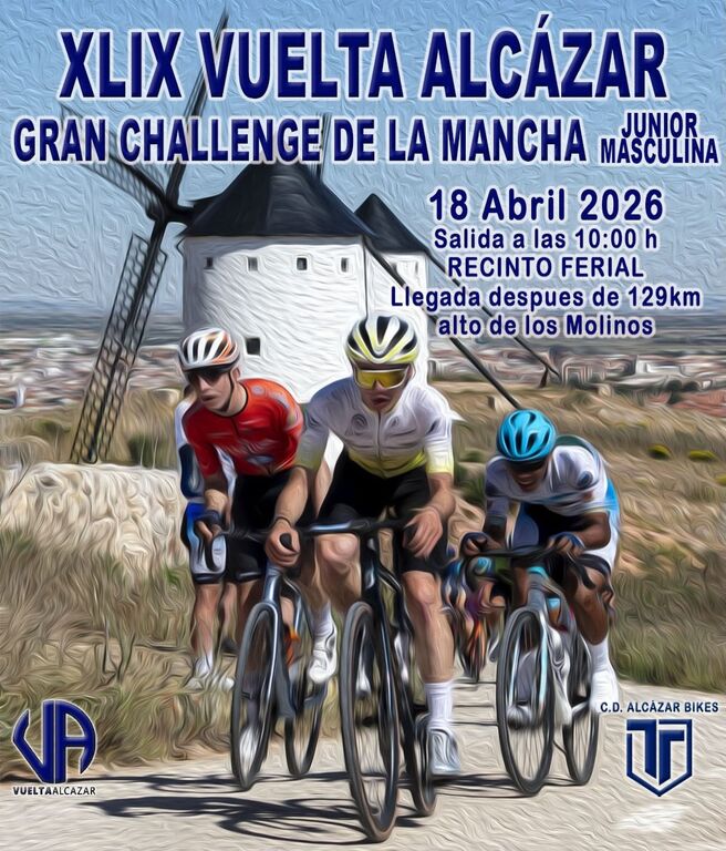 El Club Deportivo Alcázar Bikes anuncia la celebración de la XLIX Vuelta Ciclista a Alcázar “Gran Challenge de la Mancha”, que se disputará el próximo 18 de abril de 2026 en Alcázar de San Juan para la categoría junior. La prueba, que continúa consolidándose como un referente del ciclismo base nacional, presenta este año una novedad destacada: será puntuable junto a una segunda prueba que se realizará al día siguiente en Los Yébenes, ofreciendo a los corredores un desafío más completo y competitivo.