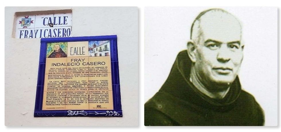 Fig.2 y 3. Detalle de la placa -recuerdo en la calle que lleva su nombre. Entorno de la calle Fray Indalecio que sale justo desde la parte de atrás del convento de San Francisco. Fotos: Rosalinda Tejera.