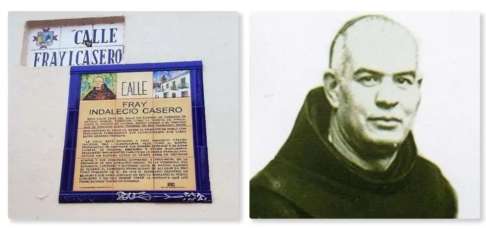 Indalecio Casero Casero vio la luz un 30 de abril de 1.862. Sus padres, Bernardino Casero, un humilde jornalero, y su madre Joaquina Casero, eran ambos naturales de Alcázar. El niño Indalecio vino al mundo en el domicilio familiar, situado en la Placeta de Palacio donde ya vivía su hermana María que fue madrina de su bautismo, celebrado en la parroquia de Santa María. La muerte, el cáncer concretamente, le sorprendió en Guadalajara, siendo presidente de la provincia franciscana de San Gregorio a los 67 años de edad un 21 de julio de 1929 tras meses de deterioro y sufrimiento. En su memoria, como recuerdo y reconocimiento cargado de afecto, Alcázar le dedicó una calle en la inmediaciones del Convento de San Francisco en la que se puede ver una placa conmemorativa con una reseña hacia el personaje.