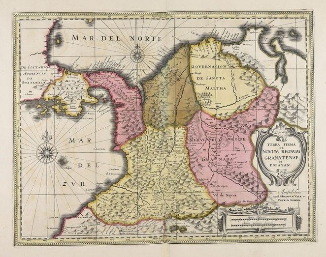 Fig. 2. Mapa de las primeras divisiones coloniales del Reino de Tierra Firme, Nuevo Reino de Granada y Popayán a principios del siglo XVI. Biblioteca Comunale De Trento.