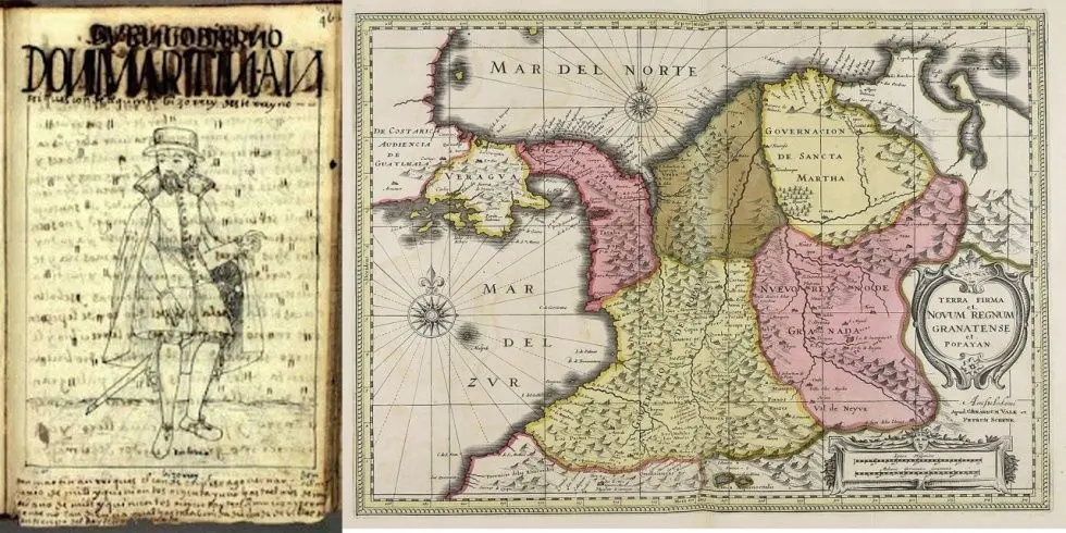 2ª. Si el destino como funcionario del Estado era Popayán y Chile, cómo es posible encontrarlo en territorio de Venezuela, Ecuador, Colombia y Chile?. Al inicio de la conquista, la división administrativa no es ni con mucho parecida a la actual. No existían esas divisiones administrativas a las que la mente nos lleva por la familiaridad y la proximidad en el tiempo. A América del Sur y Costa caribeña de América central se la llamó Tierra Firme o Nuevo Reino de Granada y Popayán (ver figura 2), nombre que se hizo extensivo posteriormente hasta los confines conocidos del estrecho de Magallanes que la separaba de Tierra del Fuego por el sur y de Nueva España por el norte (incluía México y norte del mismo). Por tanto, ya estuviera en Popayán, Quito o Lima, era la misma circunscripción administrativa que hoy día señalaría a cinco países distintos con la actual división administrativa. (Venezuela, Colombia, Ecuador, Chile y Perú).