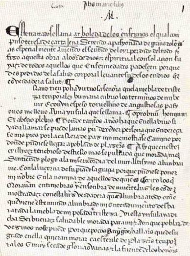 [3] Página inicial del manuscrito de Arboleda de los enfermos, Biblioteca de San Lorenzo del Escorial. En Teresa de Cartagena. Escritora y religiosa sorda del Siglo XV. En línea: www.cultura-sorda.org/teresa-de-cartagena/