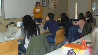 Las alumnas participaron y le formularon algunas preguntas a las que Luisa Mª respondió gustosamente, informándoles también de las posibilidades que tienen en este sector como un ámbito profesional más y con futuro como auxiliares administrativos, desarrollando una actividad que en su caso le apasiona, y comentándoles que ella estudió Trabajo Social, en la Universidad de Salamanca, y nunca pensó en su inserción al mundo laboral en el sector asegurador, si bien al terminar sus estudios y no encontrar trabajo como trabajadora social, empezó a trabajar como administrativo en el sector de los seguros, y fue adquiriendo una formación y experiencia que le llevó a trabajar como agente de seguros autónoma, desarrollando una actividad profesional que le apasiona y en la que continuamente está formándose y aprendiendo cosas nuevas.
