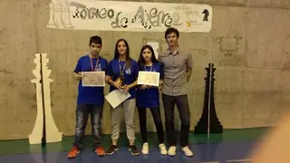 Los alumnos del IES "Juan Bosco" Clara Vela, de 4° de E.S.O y Marta Vela y Adrián Alhambra de 2° de E.S.O, acompañados de su profesor de Física y Química, Ricardo Sánchez, participaron ayer en el campeonato de ajedrez para institutos de enseñanza secundaria organizado por el IES "Alonso Quijano" de Quintanar de la Orden, obteniendo un estupendo tercer puesto.