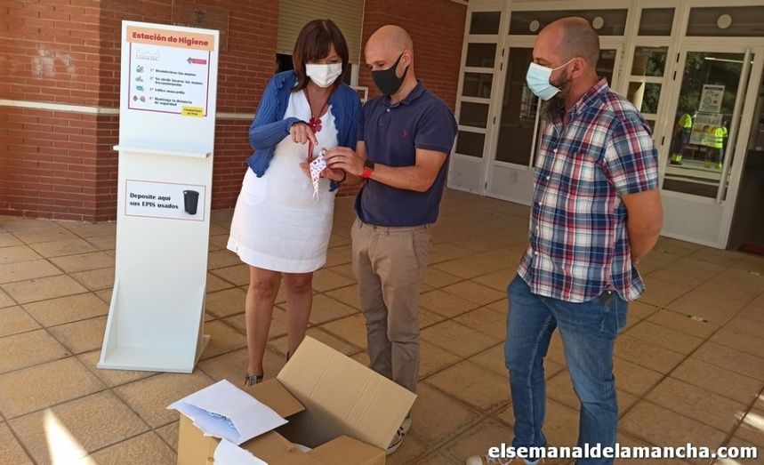 La llegada inminente del inicio del curso ha hecho que el Ayuntamiento de Alcázar de San Juan confeccione y entregue cerca de 3.000 mascarillas para los escolares de 3 a 12 años, de distinto tamaño según la edad y con motivos alcazareños, un material que se está entregando ya a los centros escolares junto a un mueble para albergar el gel desinfectante.