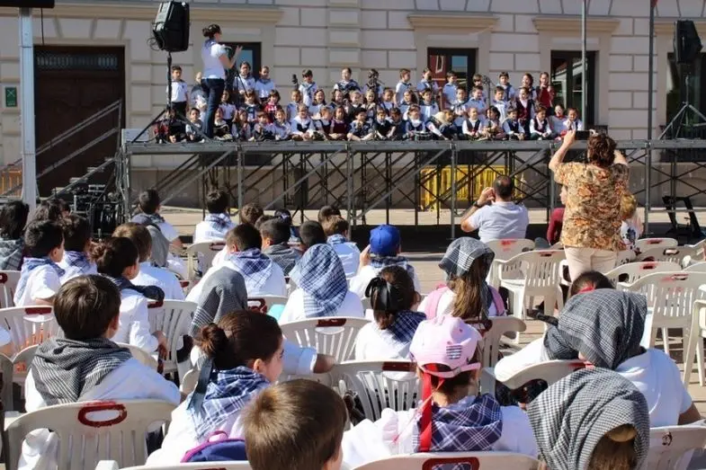 Desde las diez de la mañana y hasta casi entrado el mediodía, la Plaza de España se convirtió en centro de animación, y las voces de niños y niñas interpretando los mayos y canciones populares en el hilo musical de un soleado 24 de mayo.