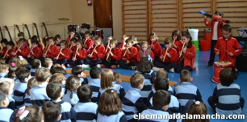 Todo el alumnado del colegio Sagrada Familia de Alcázar de San Juan participó el pasado viernes en los actos organizados por el centro para conmemorar el Día de la Música, que aunque tuvo lugar el día 22, festividad de Santa Cecilia, en el centro se celebró el viernes 30 para aprovechar la jornada de puertas abiertas.