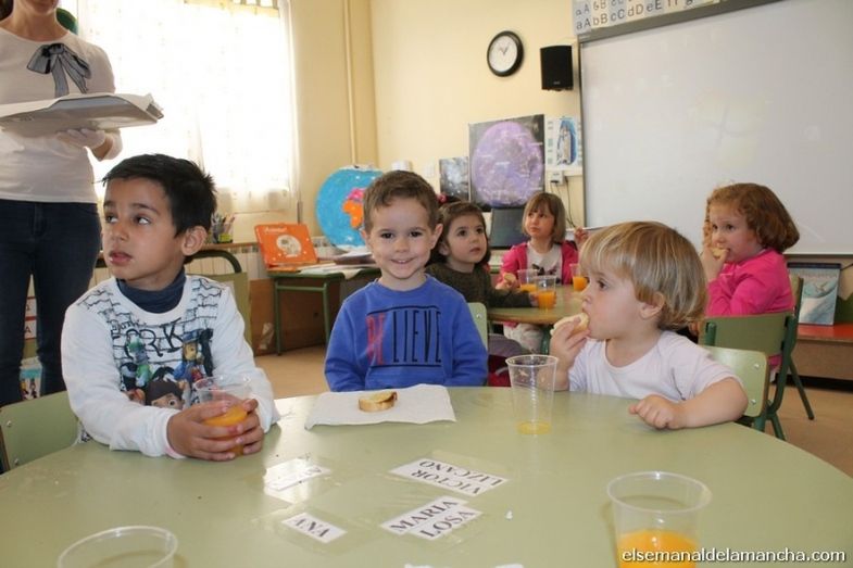 Todo el alumnado del colegio público Gloria Fuertes de Alcázar de San Juan ha disfrutado este viernes, alrededor de las once de la mañana, de un desayuno saludable organizado por el propio centro y por el AMPA Rafael Alberti, cuyos asociados han ayudado a preparar lo que los alumnos han degustado, un zumo de naranja natural y pan con aceite.