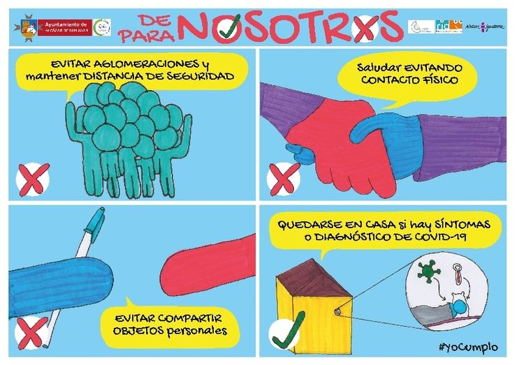 Castellanos ha explicado que el objetivo es contribuir a la prevención de la transmisión de la covid-19, mediante tres carteles elaborados por los propios niños y niñas del Consejo Local, en los que aparecen acciones que reducen la transmisión del Covid marcadas con un "tic" y acciones que facilitan la transmisión, marcadas con una "X".