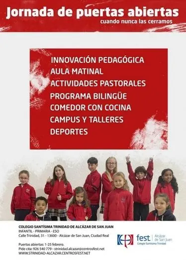 El colegio Santísima Trinidad de Alcázar de San Juan realizará sus Jornadas de Puertas Abiertas del 1 al 25 de febrero, de forma individual y presencial, mediante cita previa.