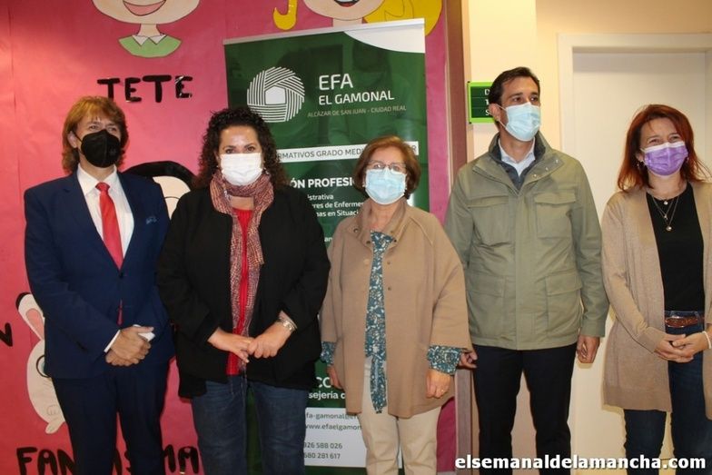 La directora general de Formación para el Empleo, Marta Roldán, visitó ayer las instalaciones de la EFA El Gamonal de Alcázar de San Juan, donde puso en valor la formación Profesional que se imparte para lograr la inserción laboral, en una visita donde estuvo acompañada por el delegado provincial de Economía, empresas y Empleo, Agustín Espinosa, la concejala de Servicios Sociales de alcázar, Patricia Benito y el director regional de los centros EFA, Pedro Barahona.