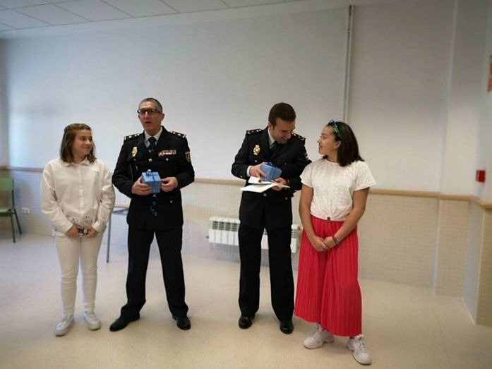 El Inspector, antes de la entrega de los carnés, agradeció a los alumnos el interés demostrado y les animó a que tengan presentes todas las recomendaciones recibidas para disfrutar de una manera segura de internet y las redes sociales. Por último, la directora del Centro, Noemí Mata, entregó a los dos miembros de la Policía Nacionalun pequeño obsequio en agradecimiento por la tarea desarrollada durante el curso.