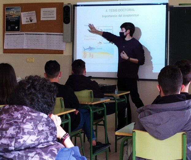 El IES "María Zambrano" de Alcázar de San Juan recibió este martes la visita de su antiguo alumno Manuel Olivares Requena, doctor en Ciencias del Mar por la Universidad de Barcelona e investigador del CSIC en el Instituto de Ciencias del Mar de la ciudad condal.