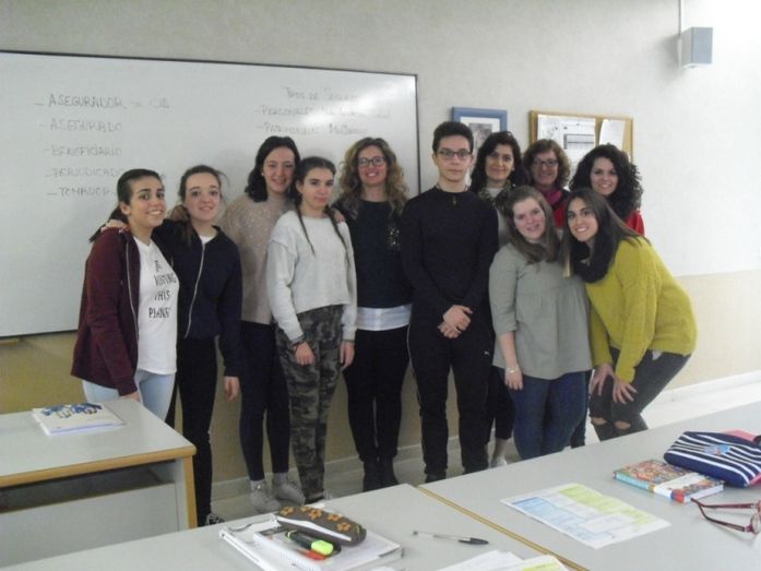 De la Guía comenzó la charla hablando del Sector Asegurador y de las entidades y organismos del Sistema Financiero Español que operan en este sector, de la legislación española competente y la intervención pública en la actividad aseguradora, y a continuación se centró en el Contrato de Seguro, los conceptos básicos del seguro, las características y elementos del contrato de seguro, la secuencia en la contratación de un seguro, y los tipos de seguros que nos encontramos en el mercado, motivando y despertando en el alumnado interés por conocer diferentes aspectos de casos concretos de algunos tipos de seguros, puesto que les mostró varias fotos con imágenes reales de siniestros que ella había llevado personalmente en el ejercicio de su actividad profesional como agente de una compañía de seguros. Nuestros alumnos participaron y le formularon algunas preguntas a las que Luisa Mª respondió gustosamente, informándoles también de las posibilidades que tienen en este sector como un ámbito profesional más y con futuro como auxiliares administrativos.