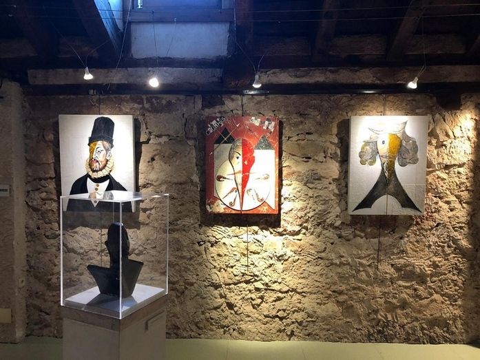 Proyecto expositivo que lo forman alrededor de 35 piezas, escultóricas y pictóricas todas ellas muy representativas de Cervantes, Quijotes, Dulcineas acompañadas de paletas y lienzos de paisajes manchegos.