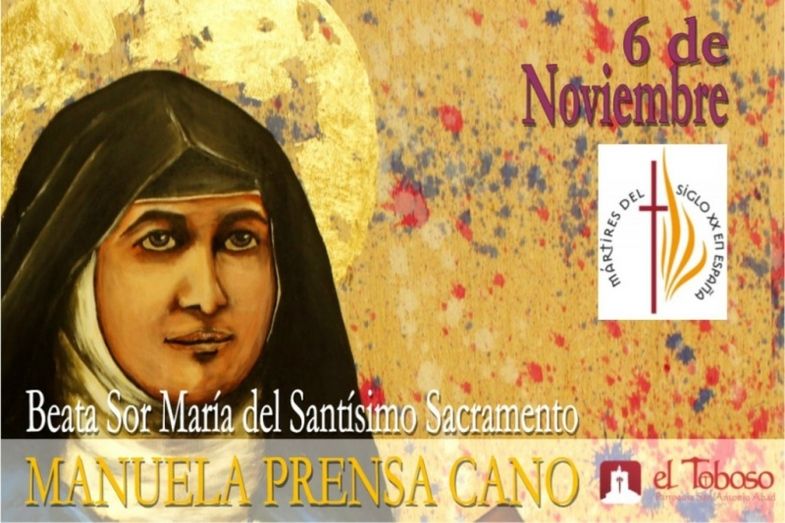 Por primera vez, la Parroquia “San Antonio Abad” de El Toboso (Toledo) celebra hoy, 6 de noviembre, la fiesta de su primera beata mártir, Sor María del Santísimo Sacramento, «nuestra paisana Manuela Prensa Cano», y compañeras religiosas concepcionistas en el día en el que la Iglesia en España conmemora litúrgicamente a todos los mártires, santos y beatos que dieron su testimonio de fe en España y ofrecieron la vida por Cristo en la persecución religiosa que se desató en el siglo XX.