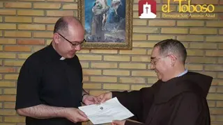 El pasado 4 de septiembre, el P. Fray Rafael Sanz Valdivieso, O.F.M, profesor de Patrología y Literatura Cristiana Antigua en la Pontificia Universidad Antonianum de Roma y predicador de los Ejercicios Espirituales a las Religiosas Clarisas de El Toboso durante los primeros días del pasado mes de septiembre, hizo entrega a D. Juan Miguel Romeralo Santiago, párroco de El Toboso y Capellán de las Clarisas, de una devota reliquia de San Francisco de Asís, segñun informa la parroquia a través de un comunicado de prensa.