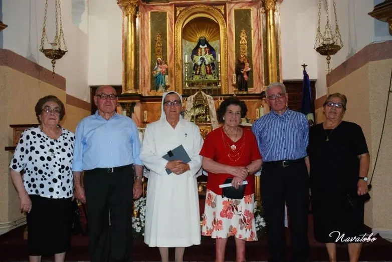 Más tarde y ya en El Toboso, la fiesta tuvo lugar en la ermita de su Santísimo Cristo de la Humildad, virtud que la define muy bien. Tal y como es sor Carmen se celebró una sencilla pero entrañable ceremonia presidida por el sacerdote don Alfonso Ramírez, toboseño, quien dedicó las palabras de su homilía para hacer una invitación a la alegría y a la acción de gracias, pese a los momentos amargos que se estaban viviendo a nivel familiar. Significaba sobre todo de atraer el recuerdo de lo vivido durante estos cincuenta años de entrega sin límites y de renovar con más fuerza esa llamada vocacional a seguir siendo Discípula de Jesús, aunque ahora desde otra perspectiva, a que fuera consciente que aún le queda mucho por aportar. Una celebración en la que se vio rodeada por toda su familia, pues en ese momento y allí estuvieron muchos más de los presentes. En la Eucaristía, de una u otra manera, participaron todos y quiso ser un homenaje a esta mujer sencilla, valiente, generosa y de gran corazón, una mujer de Dios, nunca mejor dicho.