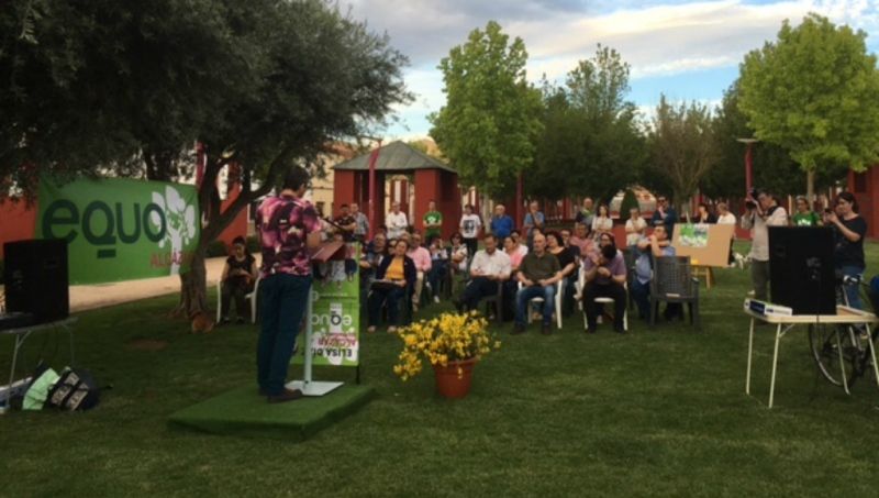 Comenzó el acto como es habitual Juan Garrido, que hizo una defensa de la candidatura de Equo y de su número uno, Elisa Díaz, por su compromiso y capacidad para asumir el gobierno de la ciudad, animando a los presentes a votar sin miedo, libremente. Resaltando que Equo no tiene dueños en forma de partidos con aparatos todopoderosos y multinacionales amigas, sus únicos dueños son los vecinos de Alcázar. Dioni Segovia imaginó una ciudad con transporte sostenible, con energías limpias, igualitaria, ciudadanos trabajando juntos, un ayuntamiento preocupado y ocupado en la formación de sus maestros, alumnado y familias, viendo a toda la tribu-ciudad ocupada en la educación de sus criaturas, la ciudad de los niños y de las niñas. Jared Rivas y Paco Morata desgranaron los compromisos más importantes del programa electoral: agua pública, por el control de los gobiernos, por la rendición de cuentas de los concejales, para que los problemas de Alcázar se resuelvan en Alcázar, para recuperar el pabellón Picasso, para mejorar el tráfico en el barrio, para la igualdad, para que no haya discriminación de ningún tipo, para conseguir un futuro verde, que es el único posible.