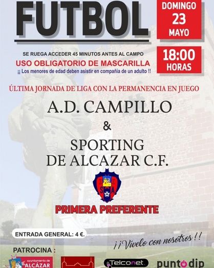 El Sporting de Alcázar décimo clasificado con 23 puntos, recibe al Campillo, sexto clasificado con 31 puntos con arbitraje de Juan Luis Martínez-Osaba Escudero, el conjunto conquense ya no se juega nada en esta vigésimo segunda y última de la liga regular. En la ida, Campillo venció por 4-2 al equipo alcazareño que tiene que ganar como sea si quiere tener opciones de salvación.