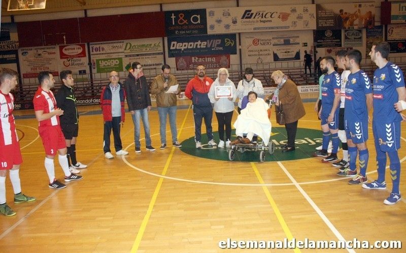Incidencias.- Encuentro correspondiente a la 23ª jornada del grupo II de la Primera Autonómica Masculina Sala celebrado el pasado sábado desde las 18:30 horas en el pabellón municipal Antonio Díaz-Miguel. Día del Aficionado en el Racing de Alcázar con regalo para los socios-abonados del club, rifa y reconocimiento a AFADIS y a la Academia de Danza Spirit Dance Studio.
