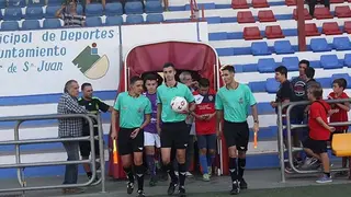 En los primeros minutos del partido se pudo ver a un Sporting de Alcázar que salió a por todas, presionó arriba e intentó no dejar salir al Ciudad de Cuenca con el balón jugado. Por su parte, los visitantes, movían bien en el centro del campo el balón, pero jugaban horizontalmente y por ello, al no ser verticales no conseguían generar claras ocasiones de gol.