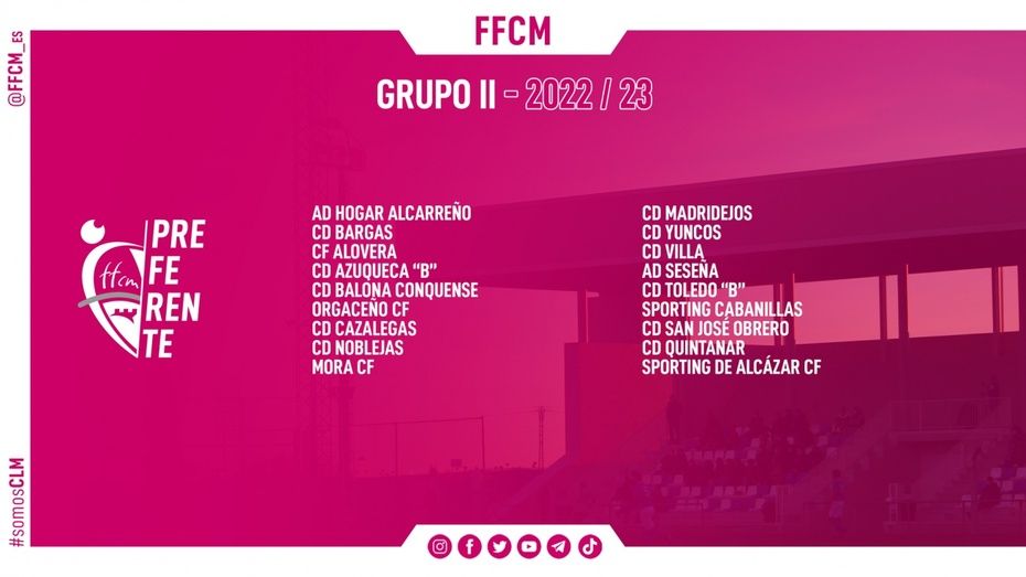 De la provincia de Toledo habrá 11 equipos: CD Bargas, Orgaceño CF, CD Cazalegas, CD Noblejas, Mora CF, CD Madridejos, CD Yuncos, CD Villa, AD Seseña, CD Toledo “B” y CD Quintanar.