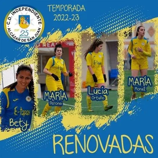 Para ello, el club alcazareño ha anunciado a través de sus redes sociales oficiales la renovación de hasta 12 futbolistas y un fichaje de campañillas. En cuanto a renovaciones, el club apuesta por la Juventud, Ilusión y Calidad, para construir una plantilla de garantías. Bety, María Perona, Lucía Ortuño y María Moral, las primeras en renovar esta temporada. Laura Merino, Laura Cuéllar, Inés Villajos y Lucía Morollón, también jugarán una temporada más en el Independiente Alcázar. Ana y Paula aportan juventud, Ilusión y futuro, aparte de sus cualidades como futbolistas.