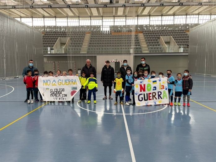 Una vez más el deporte alcazareño muestra su lado más solidario y de apoyo a los más necesitados. El pasado fin de semana, en todos los partidos de fútbol sala escolar de Alcázar de San Juan, los equipos participantes, portaron pancartas con mensajes de “No a la guerra”, “Stop de War” (Detengan la Guerra). “Nuestro Apoyo a Ucrania”, “Ucrania Libre”. Además, en todos los partidos, se guardó un riguroso y respetuoso minuto de silencio, en memoria de las víctimas de esta barbarie.