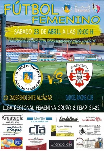 afrontan este sábado a partir de las 19:00 horas en el municipal “Manuel Delgado Meco” de Alcázar de San Juan, su “cuarta final” de las cinco que se marcaron como objetivo. Las de Millán Sierra y Juanjo Gómez, sextas clasificadas con 27 puntos, reciben al actual colista del grupo 2 de la liga regional femenina, Daimiel Racing Club, que ha sumado 6 puntos con arbitraje de Julián Tébar Torres.