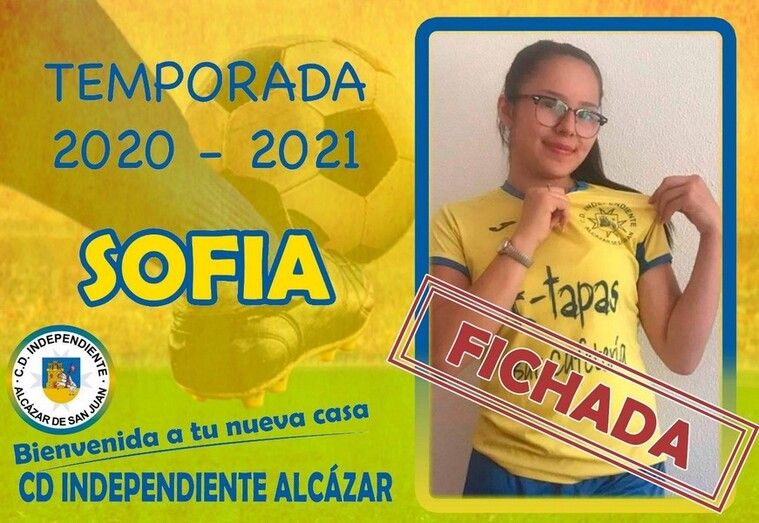 El CD Independiente Alcázar comienza a coger forma de cara a la próxima temporada 2020-2021 en la que competirá en la liga regional femenina. El club alcazareño presentaba en sus redes sociales oficiales a su primera incorporación, Sofía, primer fichaje, la jugadora de origen colombiano, pero residente en Alcázar de San Juan, lucirá el dorsal 16 las dos próximas temporadas.
