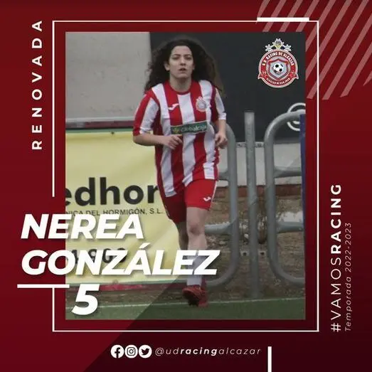 En el equipo femenino, el Racing de Alcázar ha anunciado que su jugadora Nerea González ‘Nerea’ seguirá otra temporada más en el equipo. Su gran trabajo y compromiso tanto en el terreno de juego como en el club, la han convertido en alguien imprescindible. Jugadora incombustible y con gran velocidad que cumplirá su quinta temporada como rojiblanca. Un placer que sigas con nosotros