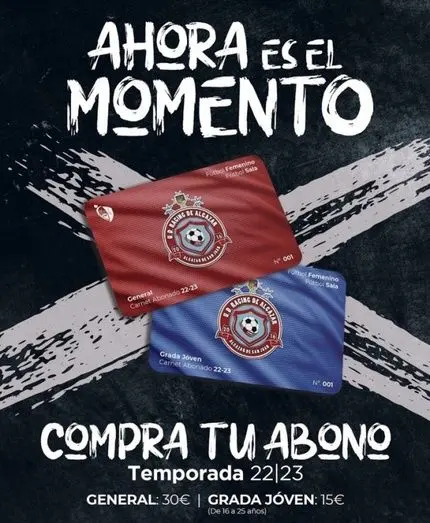 El Racing de Alcázar sigue inmerso en plena campaña de abonados para una temporada en la que quiere estar junto a sus aficionados a los que seguro les ofrecerá grandes tardes de fútbol-sala y fútbol tanto en el pabellón Antonio Díaz-Miguel, en el caso de los equipos de fútbol-sala, como en el Manuel Delgado Meco, en el caso de fútbol-11 femenino.