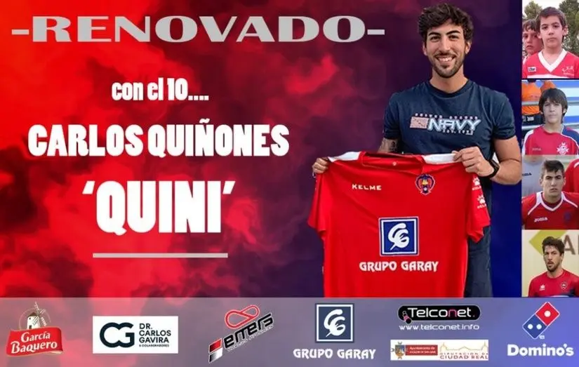 El primero en anunciar ha sido el capitán, Carlos Quiñones «Quini». El Sporting de Alcázar informa de la renovación de uno de sus grandes pilares. Enésima temporada defendiendo la camiseta de Alcázar de San Juan, Carlos Quiñones Moratalla «Quini», en plena madurez futbolística y tras sellar una de sus mejores temporadas en la categoría, continuará para la 2022-23 en su casa.