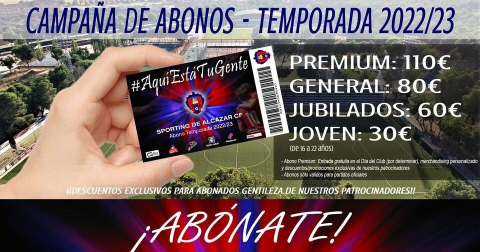 De esta manera, el Sporting de Alcázar lanza sus abonados de temporada para sus tres equipos, Primera Autonómica Preferente, Juvenil Preferente y Juvenil Provincial.