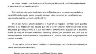 El máximo responsable del club alcazareño quiere desear “lo mejor en sus negocios, familias y seres queridos”, poniendo el club a disposición de aquel que lo necesite en lo que “esté a nuestro alcance”.