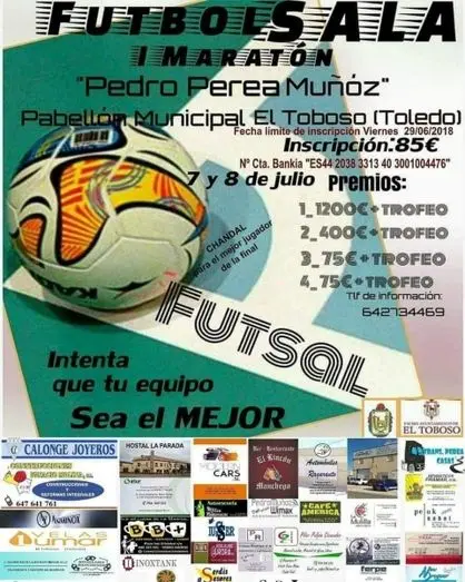La localidad toledana del Toboso acoge este fin de semana el I Maratón de fútbol sala que lleva el nombre de Pedro Perea Muñoz, y que va a contar con un total de 23 equipos venidos de diferentes puntos de Castilla-La Mancha y de varios puntos de España, como Madrid y Castellón.