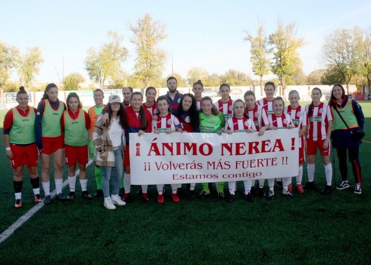 Antes de comenzar el encuentro, las rojiblancas mostraron una pancarta de apoyo a Nerea que, tras la lesión de la semana pasada, estará de baja unas cuantas semanas.