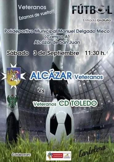 Con motivo de la Feria y Fiestas de Alcázar de San Juan y como es tradicional y habitual, el equipo local Alcázar Veteranos, se medirán en partido amistoso a los veteranos del CD Toledo, un partido en el que los aficionados podrán disfrutar de ilustres e históricos jugadores de los equipos alcazareños y también del club toledano.
