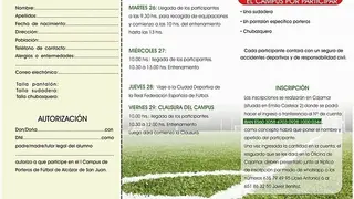 El martes 26, todos los alumnos y alumnas inscritos/as están convocados a las 9:30 horas en el campo de fútbol, donde se les entregará el material deportivo de entrenamiento: 1 pantalón pirata con protección especial para porteros, 1 sudadera de entrenamiento y un chubasquero deportivo.