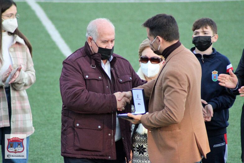 Nacional que enfrentaba al equipo del club villacañero contra el Formac Villarrubia, y se hizo ante la atenta mirada de la afición que llenó las gradas del municipal “Las Pirámides”, entre quienes estaban los familiares del homenajeado, a quienes Santos dedicó el reconocimiento junto al pueblo de Villacañas.